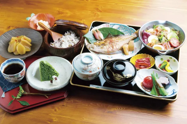 甘えび・がさえびと2種類の海鮮ネタの丼、珍しいもちえびの唐揚げや甘えびシュウマイ、牧場直送ミルクのグラタンなど、三国の美味を凝縮。 料理旅館「望洋楼」がプロデュースし、素材の鮮度はもちろん、自家製にもこだわった、職人の手間を感じる美食に酔いしれて。