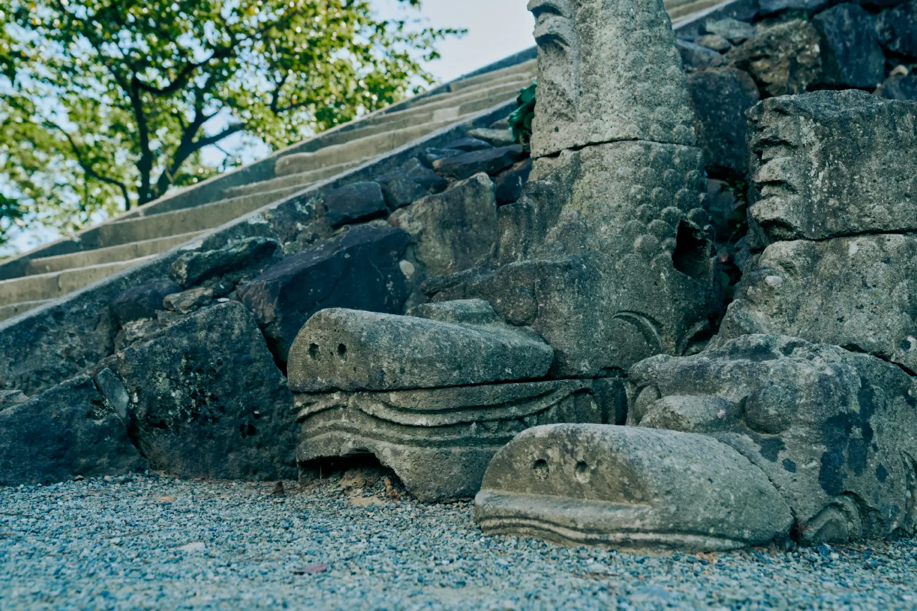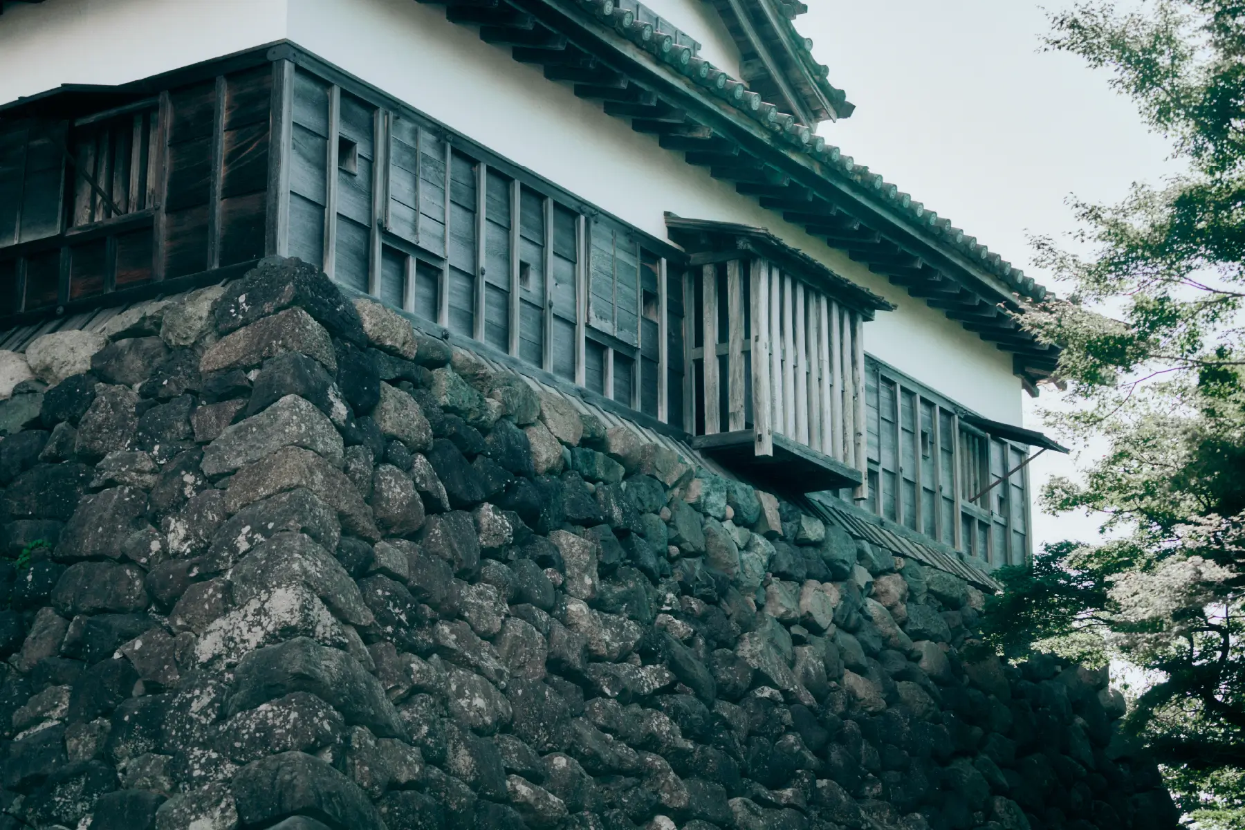 The stone walls, in a style known as "Nozura-tsumi", are made by piling natural stones with little processing. Even though the piles may look rough with many gaps, they are piled with the skill of a master craftsman to ensure good drainage and to prevent collapse even in heavy rains. The restoration of the castle tower, which once collapsed after the Fukui earthquake, was another feat of master craftsmanship. More than 70% of the pillars and beams are from the Edo period, and were repaired exactly as they were before the collapse. From the Edo period to the present day, Maruoka Castle has been protected by master carpenters, stonemasons, and plasterers, supported by simple but traditional Japanese techniques.