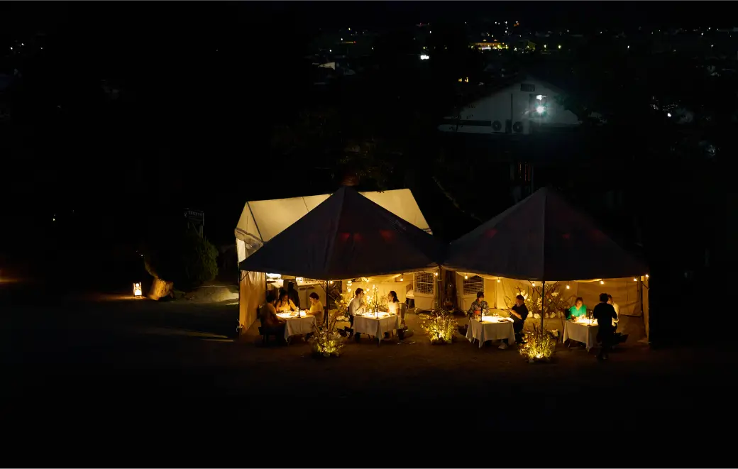 This premium dinner, supervised by Fukui's top restaurants, will be held at a special location overlooking the castle tower. Enjoy a luxurious moment as you savor a variety of dishes prepared by chefs using local ingredients and their masterful techniques, while gazing at Maruoka Castle illuminated by moonlight.