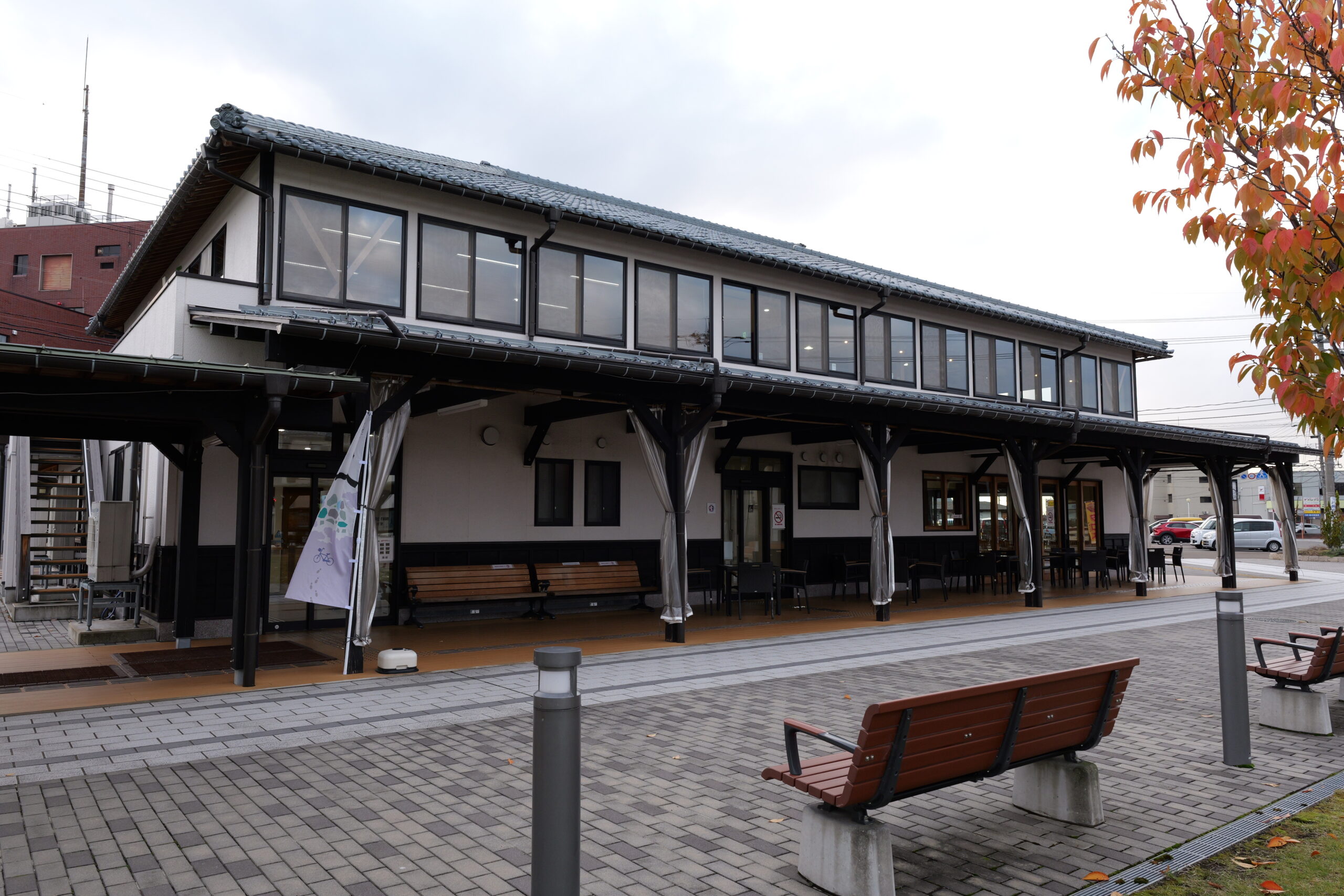 丸岡バスターミナル交流センターは、北陸唯一の現存天守「丸岡城」の玄関口としてのバスターミナル機能や、丸岡や坂井市内、県内主要駅などを繋ぐ交通結節点としての機能を持っています。