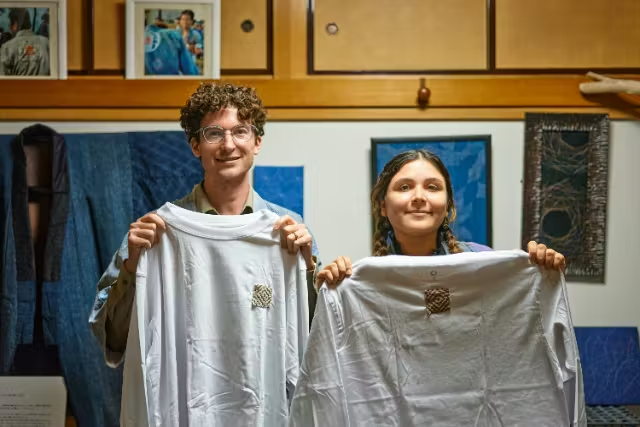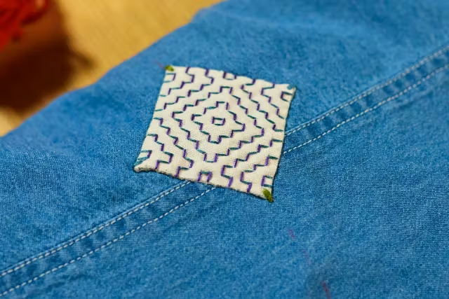 完成した背守りはアップリケの形に仕上げ、 ご自身のシャツなどに縫い付けていただきます。