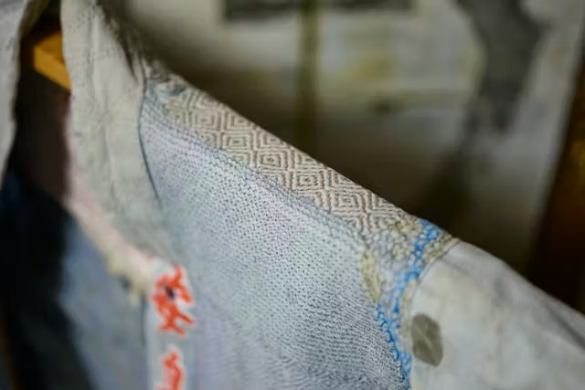 “背守り”とは、子どもの健やかな成長を願い、 悪いものが背中から入らないようにと刺されていたお守りの刺繍。